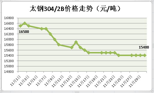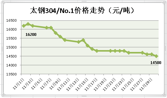 回顾11月,30491视频黄下载圆管市场整体呈现“下坡式”走势,热轧大幅下跌,倒逼冷轧下调。其中太钢304热轧下调高达1700元,跌幅约10.4%;304冷轧跌1100,跌幅约6.7%;联众201冷轧跌950元,跌幅约9.7%。